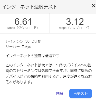 ただ、ソフトバンクのほうで工事が終わるまでソフトバンクAirを貸してくれることになりました。ソフトバンクAirの通信速度が知りたかったのでこれはとても嬉しいです。通信速度は以下でした。